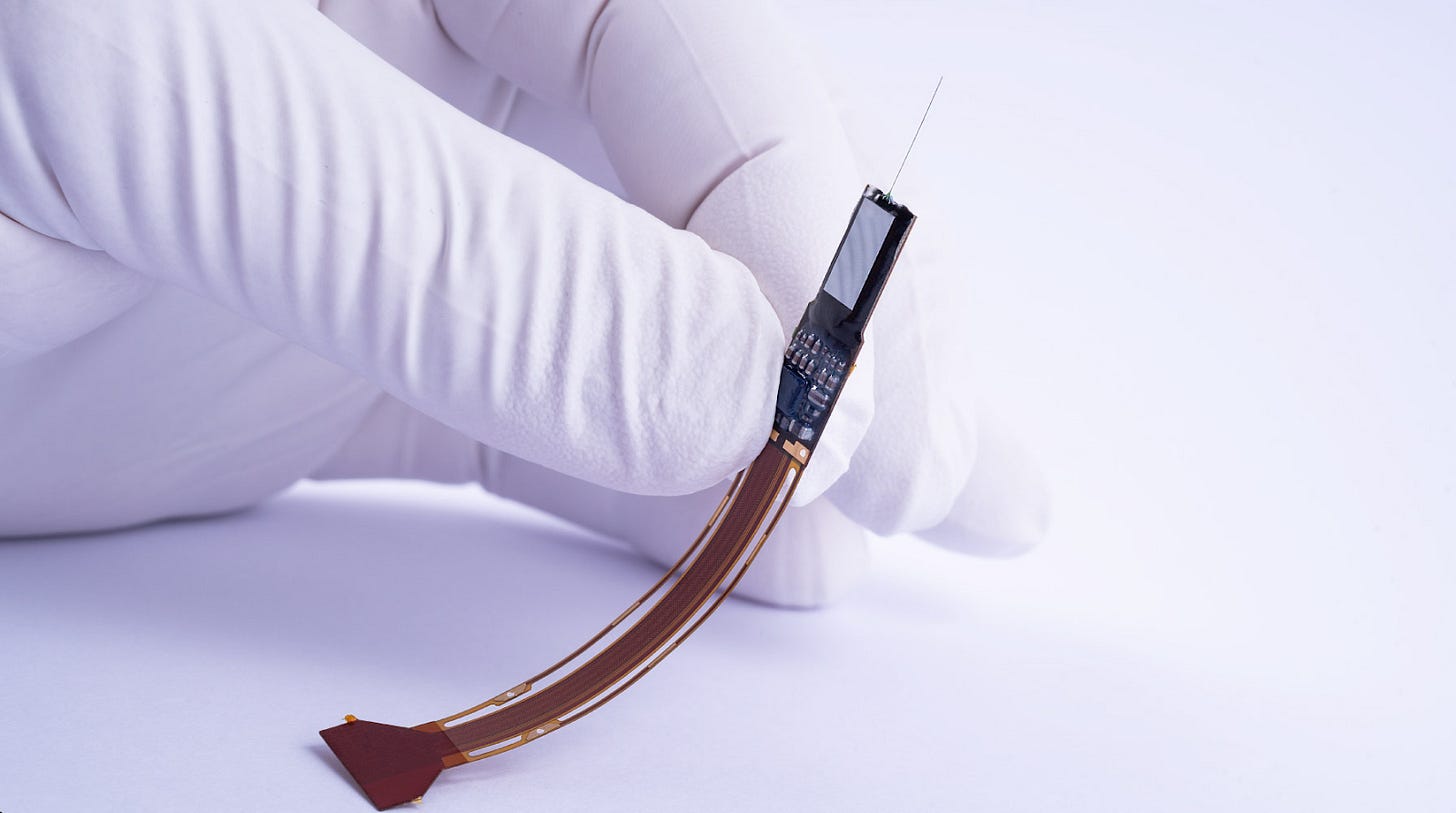 Second, the hardware is ready to scale. Neuropixels provide a well-laid technological path to dramatically increase representation fidelity. Our funding for Neuropixels will deliver significantly improved density of the previous generations and stands on the shoulders of a decade of previous work at IMEC and funding from their supporters.